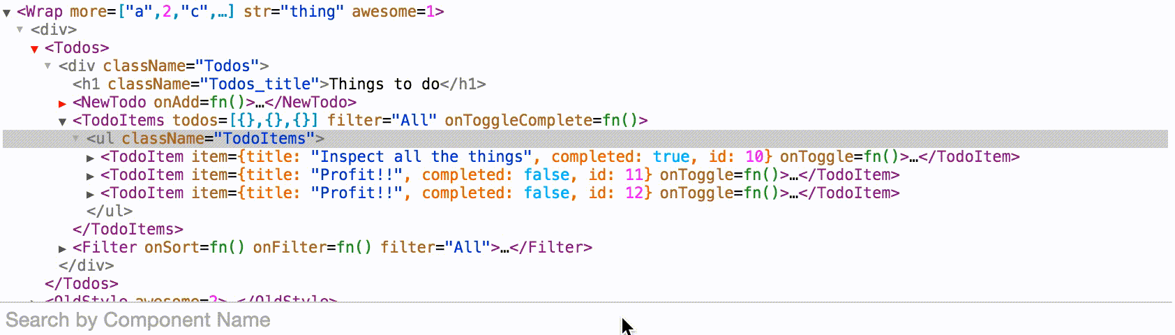 • Much richer view of your props, including the contents of objects and arrays